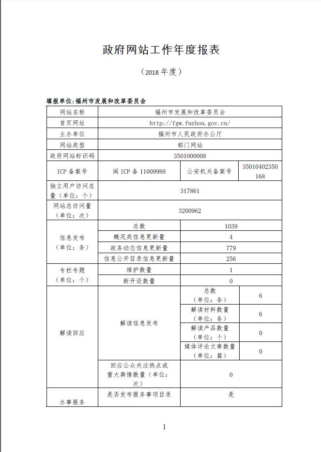 福州市发展和改革委员会2018年度政府网站工作年度报表